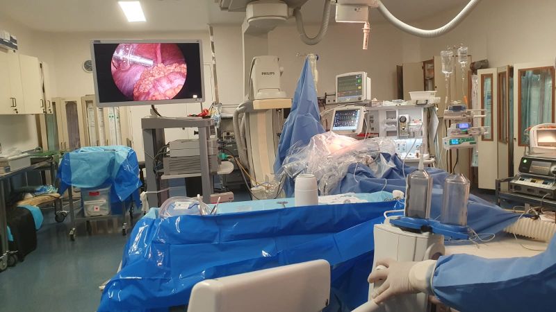 El equipo de cirugía de superficie peritoneal, integrado por los Dres. Fernando Iglesia, Sergio Quildrian y Walter Nardi, del Servicio de Cirugía General, llevó a cabo esta intervención innovadora, que consiste en la realización de quimioterapia intraperitoneal aerosolizada por vía laparoscópica. Este tipo de procedimientos permite mayores opciones de tratamiento para los pacientes con enfermedad oncológica avanzada en el peritoneo.
